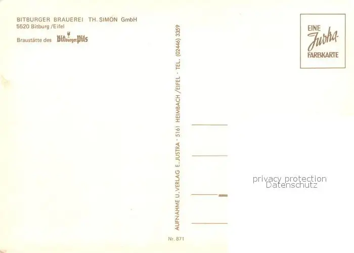 Bitburg Bitburger Brauerei TH Simon GmbH Bitburg postalisch nicht gelaufen nach 1965 Erhaltung siehe scans [FriedD77] Frierer