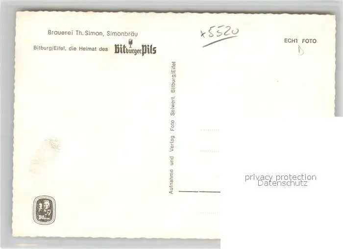 Bitburg Brauerei Th. Simon Simonbraeu Bierbrunnen Bitburg postalisch nicht gelaufen nach 1965 Erhaltung siehe scans [FriedD77] Frierer