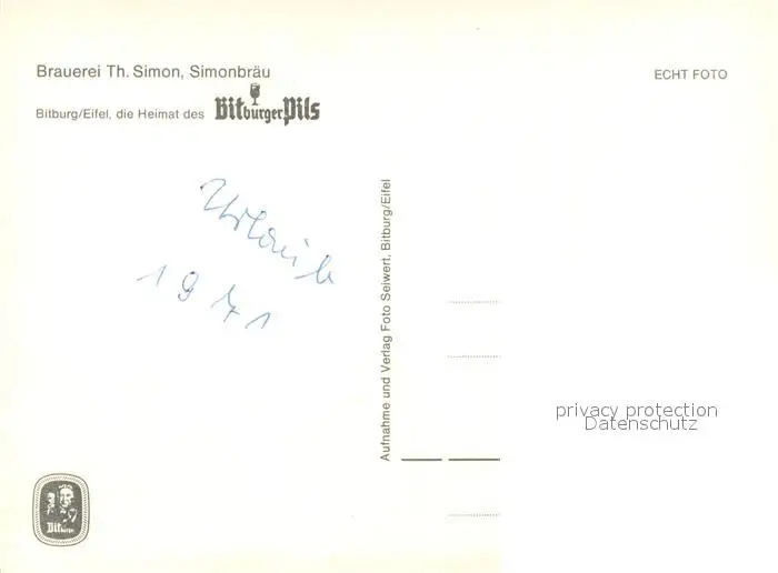 Bitburg Brauerei Th. Simon Simonbraeu Bittburger Pils Brunnen Bitburg postalisch nicht gelaufen 1971 Erhaltung siehe scans [FriedD77] Frierer