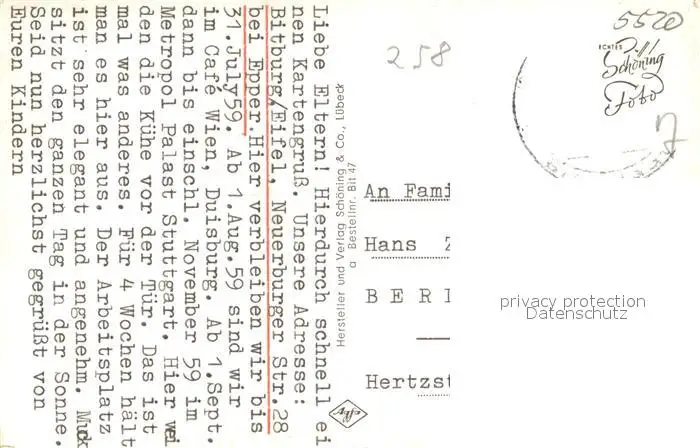 Bitburg Mariengrotte Bierbrunnen Ehrenfriedhof Altstadt Krankenhaus Bitburg postalisch gelaufen 1959 Erhaltung siehe scans [FriedD77] Frierer