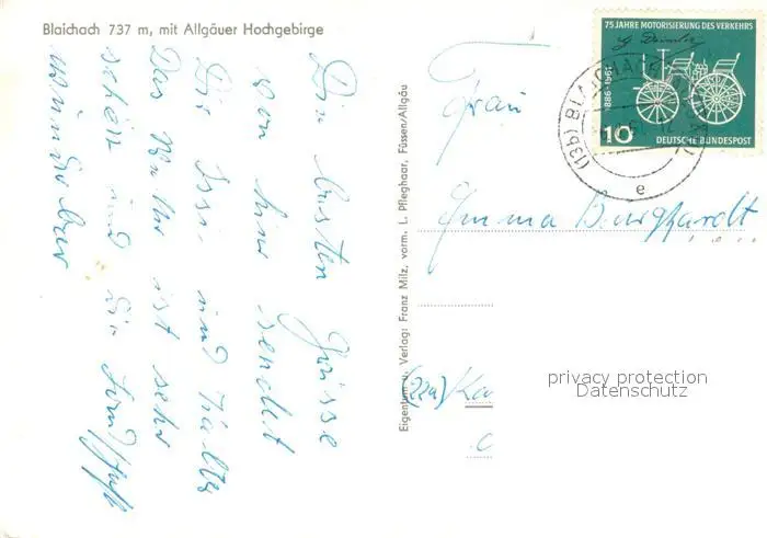 Blaichach_Allgaeu Gesamtansicht mit Allgaeuer Hochgebirge Blaichach_Allgaeu postalisch gelaufen 1961 Erhaltung siehe scans [FriedD77] Frierer