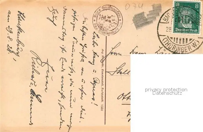 Blankenburg_Bad Panorama Ruine Greifenstein Blankenburg_Bad postalisch gelaufen 1928 Erhaltung siehe scans [KathaD81] Kathoren
