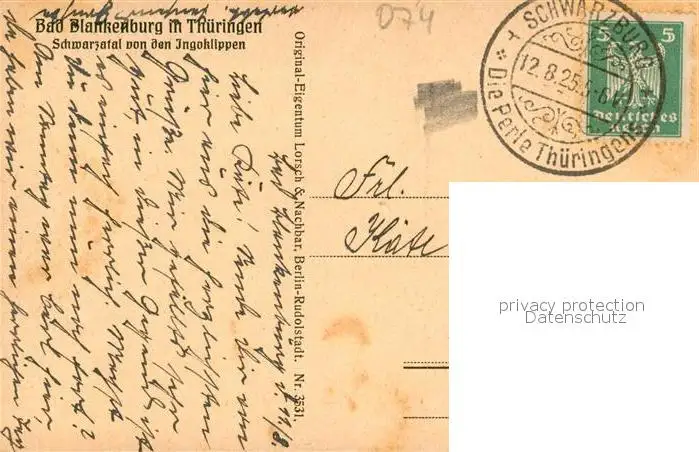 Blankenburg_Bad Schwarztal Ingoklippen Blankenburg_Bad postalisch gelaufen 1925 Erhaltung siehe scans [KathaD81] Kathoren