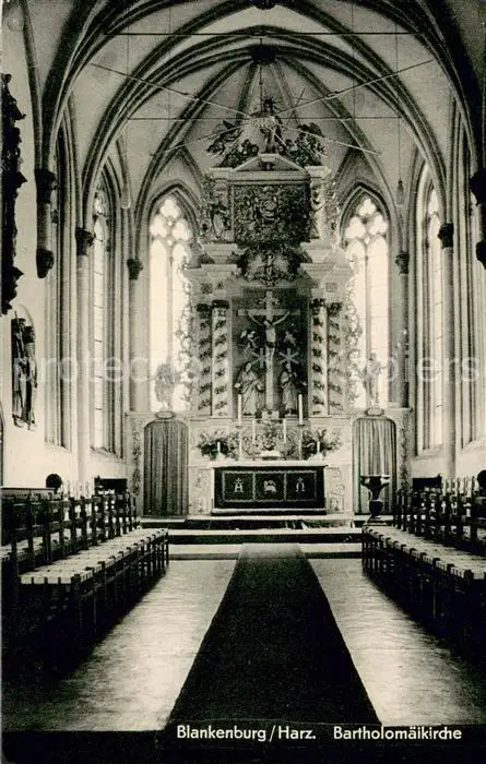 AK / Ansichtskarte Blankenburg_Harz Bartholomaeikirche Innenansicht Blankenburg_Harz