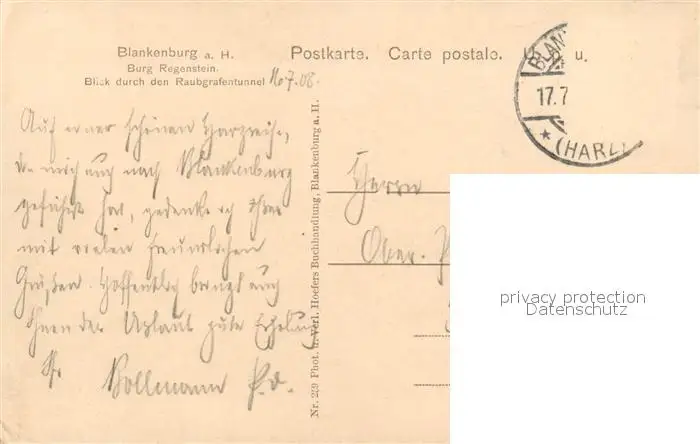 Blankenburg_Harz Burg Regenstein Raubgrafentunnel Blankenburg_Harz postalisch gelaufen 1908 Erhaltung siehe scans [FriedD77] Frierer