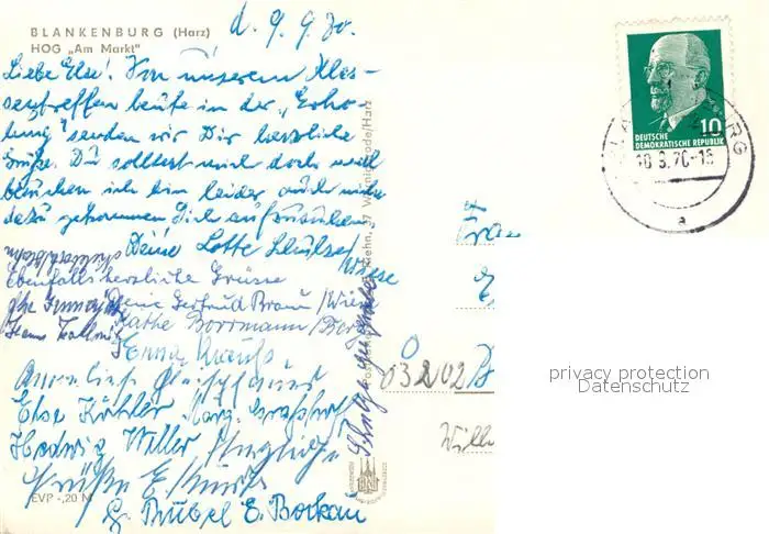 Blankenburg_Harz Gaststaette Am Markt Blankenburg_Harz postalisch gelaufen 1970 Erhaltung siehe scans [NatalD47] NataID47