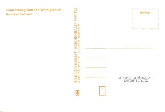 Blankenburg_Harz Gaststaette Grossvater Blankenburg_Harz postalisch nicht gelaufen nach 1965 Erhaltung siehe scans [FriedD77] Frierer