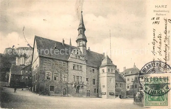 Blankenburg_Harz Rathaus Blankenburg_Harz postalisch gelaufen 1903 Erhaltung siehe scans [WerneD78] WernPID7