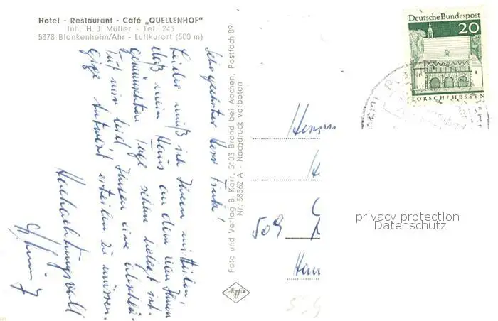 Blankenheim_Ahr Hotel-Restaurant Quellenhof Aussenansicht Blankenheim_Ahr postalisch gelaufen 1969 Erhaltung siehe scans [LiesaD40] LiesID40