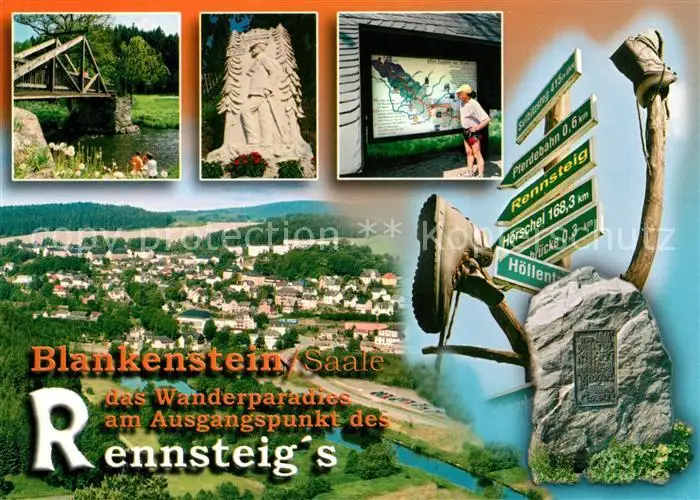 AK / Ansichtskarte Blankenstein_Saale Wanderparadies am Ausgangspunkt des Rennsteigs Gedenkstein Wegweiser Blankenstein_Saale Kat. Blankenstein Saale