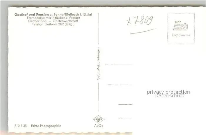 Bleibach Gasthaus zur Sonne Gaststube Bleibach postalisch nicht gelaufen 1921-1965 Erhaltung siehe scans [KathaD81] Kathoren
