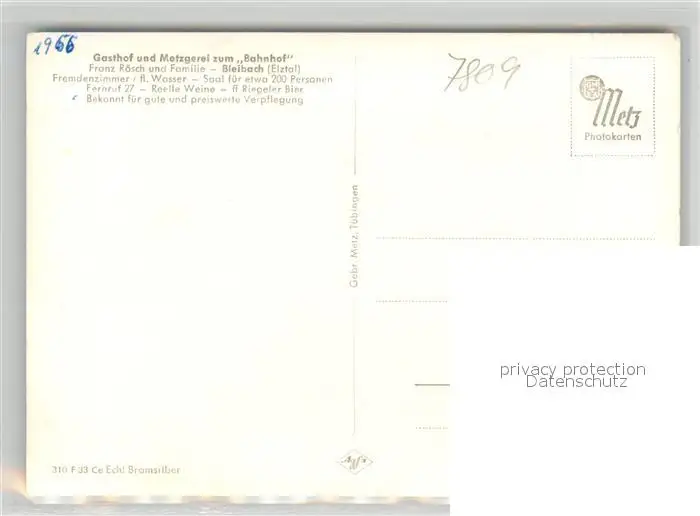 Bleibach Gasthof Bahnhof Bleibach postalisch nicht gelaufen 1921-1965 Erhaltung siehe scans [NatalD47] NataID47