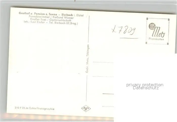 Bleibach Gasthof Sonne Bleibach postalisch nicht gelaufen 1921-1965 Erhaltung siehe scans [NatalD47] NataID47