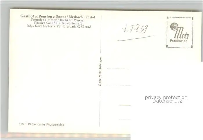 Bleibach Gasthof Sonne Bleibach postalisch nicht gelaufen 1921-1965 Erhaltung siehe scans [NatalD47] NataID47