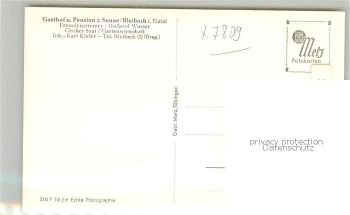 Bleibach Gasthof Sonne Bleibach postalisch nicht gelaufen 1921-1965 Erhaltung siehe scans [NatalD47] NataID47