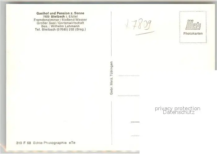 Bleibach Gasthof Sonne Bleibach postalisch nicht gelaufen 1921-1965 Erhaltung siehe scans [NatalD47] NataID47