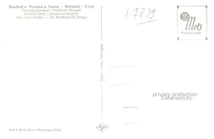 Bleibach Gasthof zur Sonne Bleibach postalisch nicht gelaufen 1921-1965 Erhaltung siehe scans [NatalD47] NataID47