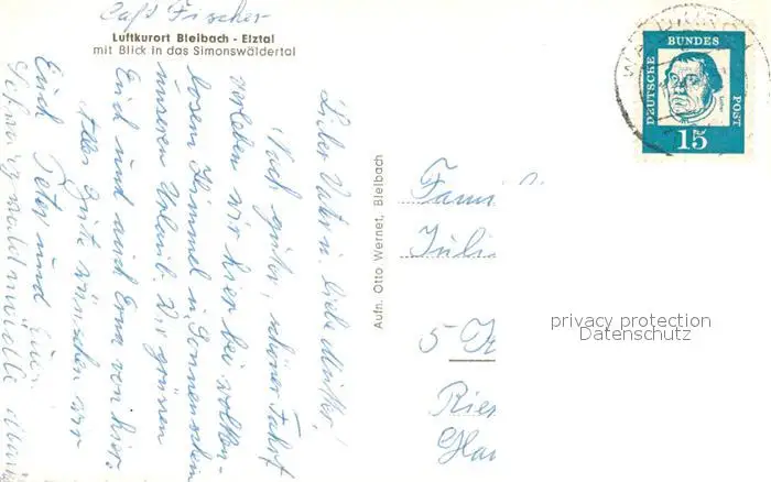 Bleibach Luftkurort im Elztal Blick ins Simonswaeldertal Schwarzwald Bleibach postalisch gelaufen 1964 Erhaltung siehe scans [FriedD77] Frierer