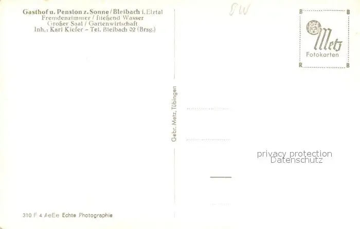 Bleibach Kategorie Alte Ansichtskarten Postkarten bx60495 Bleibach Pensoin zur Sonne Bleibach postalisch nicht gelaufen Erhaltung siehe scans [Darjalle]