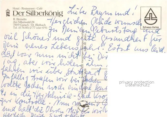 Bleibach_Gutach_Breisgau Hotel Restaurant Cafe Der Silberkoenig postalisch nicht gelaufen nach 1965 Erhaltung siehe scans [WerneD78] WernPID7