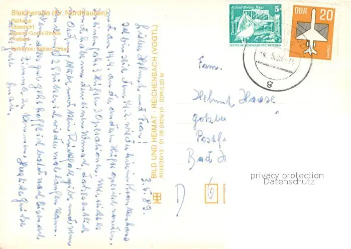 Bleicherode Rathaus Panorama Maxim Gorki Strasse Freibad Bleicherode postalisch gelaufen nach 1965 Erhaltung siehe scans [WerneD78] WernPID7