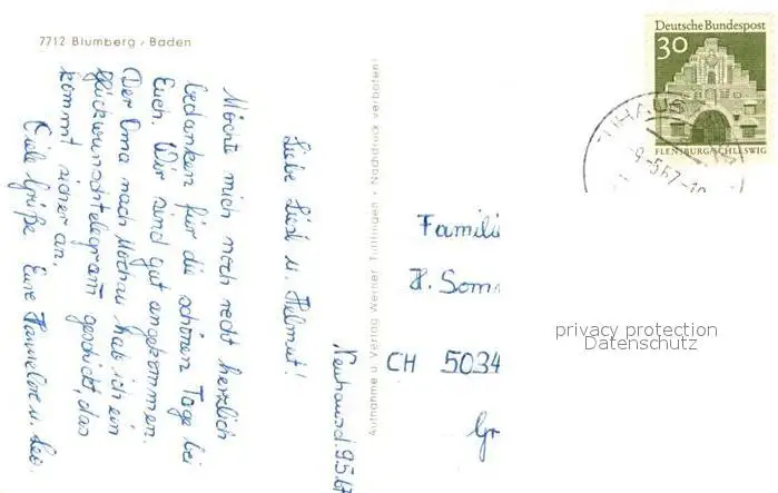 Blumberg_Baden Kategorie Alte Ansichtskarten Postkarten bx61637 Blumberg_Baden Kirche Stadtansichten Blumberg_Baden postalisch gelaufen 1967 Erhaltung siehe scans [KathaD81]