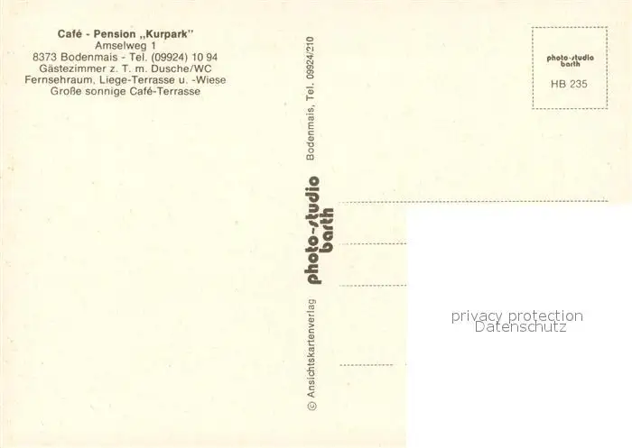 Bodenmais Cafe Pension Kurpark Panorama Bayerischer Wald Bodenmais postalisch nicht gelaufen nach 1965 Erhaltung siehe scans [FriedD77] Frierer