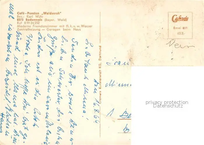 Bodenmais Café Pension Waldesruh Bodenmais postalisch nicht gelaufen 1964 Erhaltung siehe scans [FriedD77] Frierer