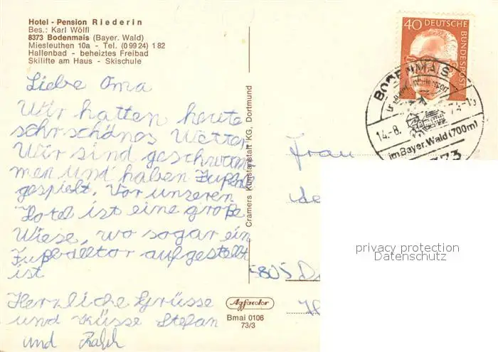 Bodenmais Hotel Pension Riederin Swimming Pool Panorama Bayerischer Wald Bodenmais postalisch gelaufen 1974 Erhaltung siehe scans [FriedD77] Frierer