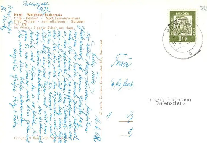 Bodenmais Hotel Waldhaus Bodenmais Bodenmais postalisch gelaufen 1962 Erhaltung siehe scans [WerneD78] WernPID7
