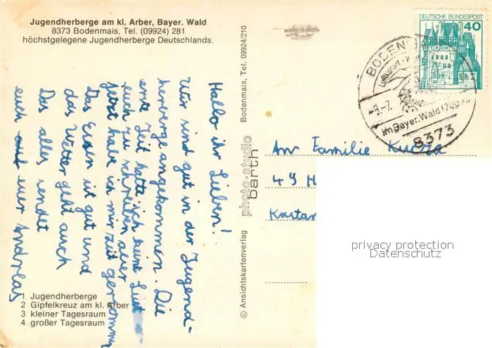 Bodenmais Jugendherberge Gipfelkreuz am Kl Arber Kleiner und grosser Tagesraum Bodenmais postalisch gelaufen nach 1965 Erhaltung siehe scans [WerneD78] WernPID7