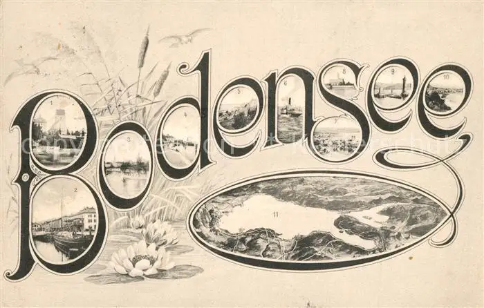 Bodensee_Region aus der Vogelperspektive Sehenswuerdigkeiten der Region Bodensee Region postalisch gelaufen 1905 Erhaltung siehe scans [FriedD77] Frierer