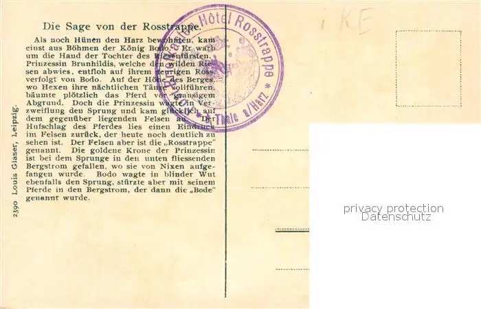 Bodetal_Harz Die Sage von der Rosstrappe Bodetal Harz postalisch nicht gelaufen 1921-1965 Erhaltung siehe scans [WerneD78] WernPID7