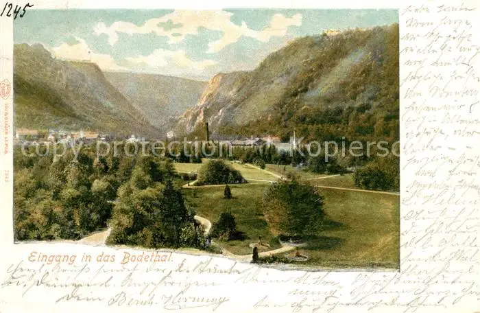 Bodetal_Harz Landschaftspanorama Eingang ins Bodetal Bodetal Harz postalisch gelaufen 1902 Erhaltung siehe scans [FriedD77] Frierer