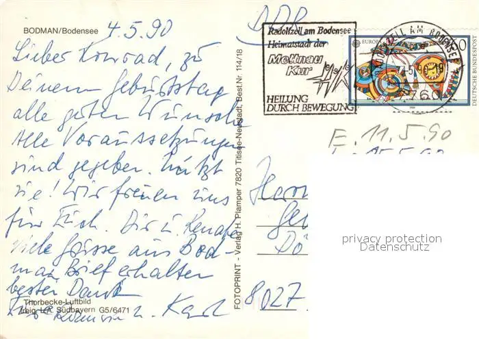 Bodman_Bodensee Fliegeraufnahme Bodman Bodensee postalisch gelaufen 1990 Erhaltung siehe scans [FriedD77] Frierer