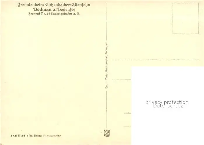 Bodman Bodensee Kategorie Alte Ansichtskarten Postkarten bx68705 Bodman_Bodensee Fremdenheim Eschenbacher Ellensohn Bodman Bodensee postalisch nicht gelaufen Erhaltung siehe scans [KathaD81]