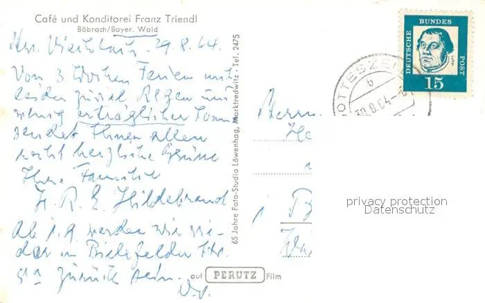 Boebrach Kategorie Alte Ansichtskarten Postkarten bx93074 Boebrach Cafe Konditorei Franz Triendl Gaststube Panorama Bachlauf Boebrach postalisch gelaufen 1964 Erhaltung siehe scans [WerneD78]