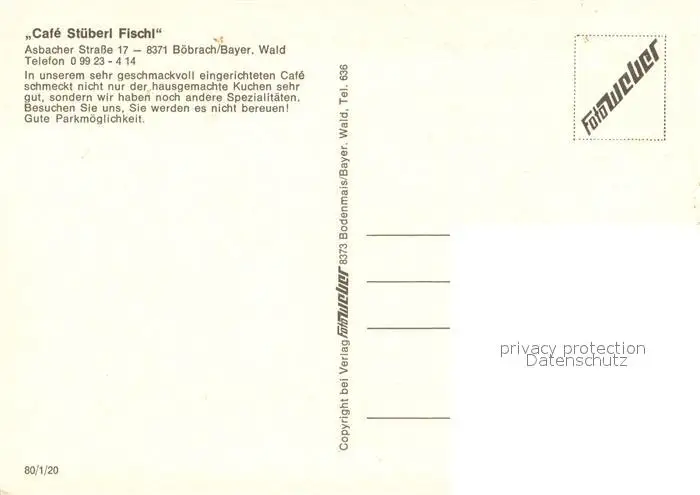 Boebrach Cafe Stueberl Fischl Gastraeume Boebrach postalisch nicht gelaufen nach 1965 Erhaltung siehe scans [WerneD78] WernPID7