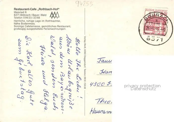Boebrach Restaurant Rothbach Hof Terrasse Gaststube Weiher Boebrach postalisch gelaufen 1986 Erhaltung siehe scans [WerneD78] WernPID7