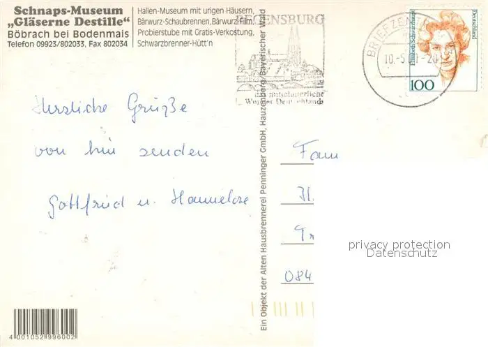 Boebrach Schnaps Museum Glaeserne Destille Baerwurz Schaubrennerei Probierstube Schwarzbrenner Huette Boebrach postalisch gelaufen 2001 Erhaltung siehe scans [WerneD78] WernPID7