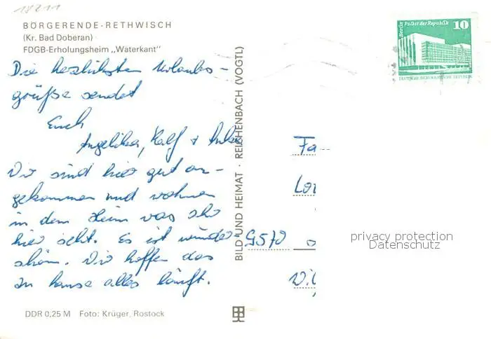 Boergerende-Rethwisch FDGB Erholungsheim Waterkant Boergerende-Rethwisch postalisch gelaufen nach 1965 Erhaltung siehe scans [FriedD77] Frierer