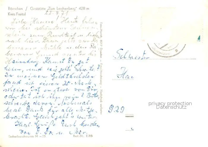 Boernchen Bannewitz Kategorie Alte Ansichtskarten Postkarten bx87195 Boernchen_Bannewitz Gasthaus Lerchenberg Boernchen Bannewitz postalisch gelaufen 1971 Erhaltung siehe scans [WerneD78]