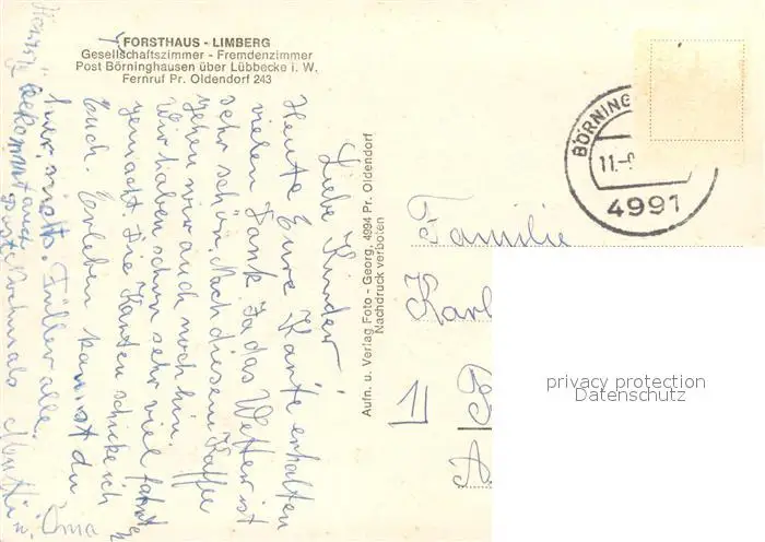 Boerninghausen Forsthaus Limberg Boerninghausen postalisch gelaufen 1921-1965 Erhaltung siehe scans [WerneD78] WernPID7