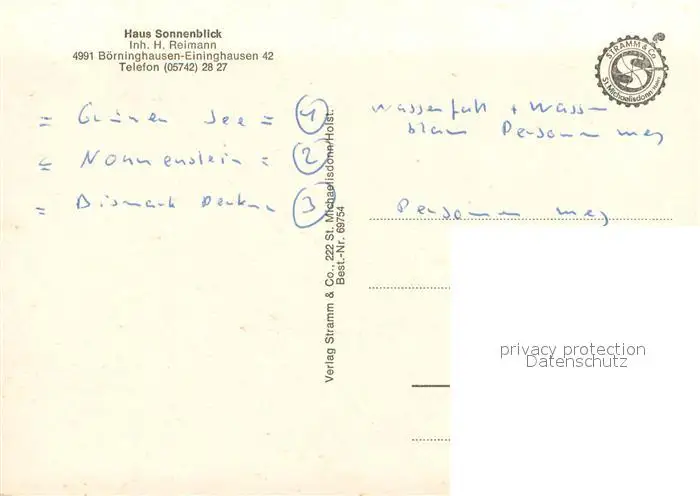 Boerninghausen Haus Sonnenblick Gruener See Nonnenstein Bismarck-Denkmal Boerninghausen postalisch nicht gelaufen nach 1965 Erhaltung siehe scans [LiesaD40] LiesID40