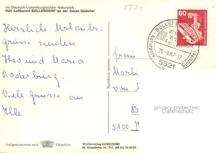 Bollendorf_Suedeifel Stadtbild mit Kirche Bollendorf_Suedeifel postalisch gelaufen 1982 Erhaltung siehe scans [FriedD77] Frierer