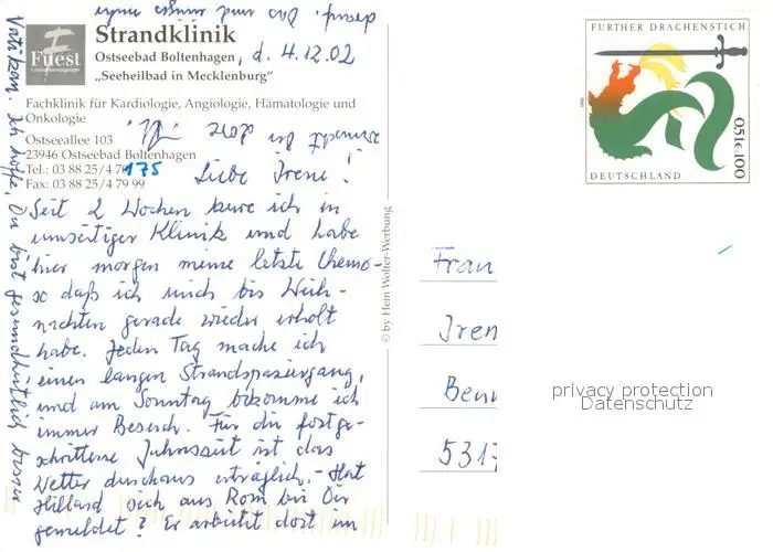 Boltenhagen_Ostseebad Strandklinik Boltenhagen_Ostseebad postalisch gelaufen 2002 Erhaltung siehe scans [WerneD78] WernPID7
