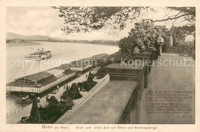 AK / Ansichtskarte Bonn_Rhein Blick vom alten Zoll auf Rhein und Siebengebirge Fluss Badeanstalten Dampfer Bonn_Rhein