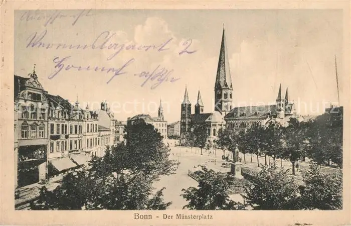 Bonn_Rhein Muensterplatz Kirche Bonn_Rhein postalisch gelaufen 1918 Feldpostkarte Erhaltung siehe scans [FriedD77] Feldpostkarte Frierer