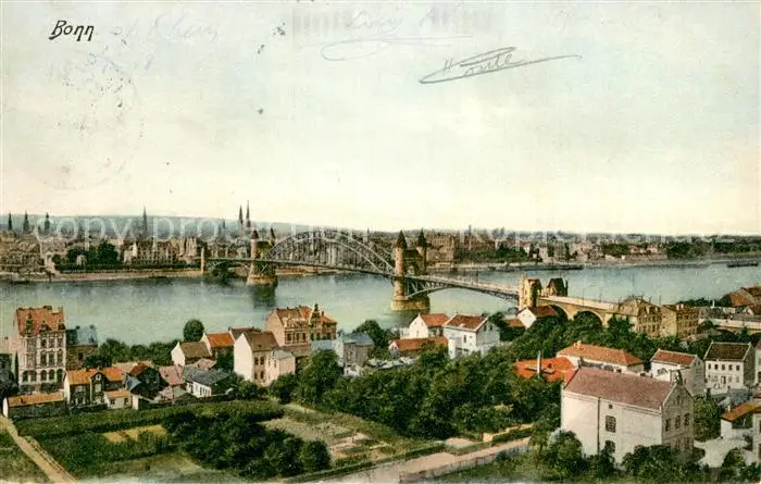 Bonn_Rhein Panorama mit Rheinbruecke Bonn_Rhein postalisch gelaufen 1908 Erhaltung siehe scans [FriedD77] Frierer