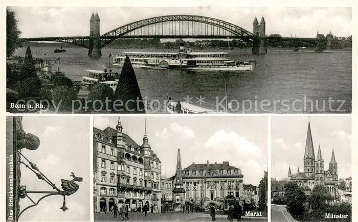 AK / Ansichtskarte Bonn_Rhein Rheinbruecke Dampfer Brueckenmaennchen Markt Muenster Bonn_Rhein